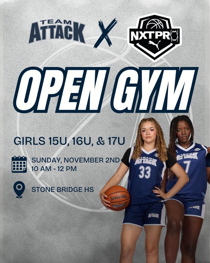 17U, 16U, and 15U girls playing high school and travel basketball are invited to join Team Attack for an Open Gym. This coach-led basketball workout is a great opportunity to meet the coaching staff, participate in a structured training session, and learn more about the upcoming PUMA NXT PRO 2026 season.